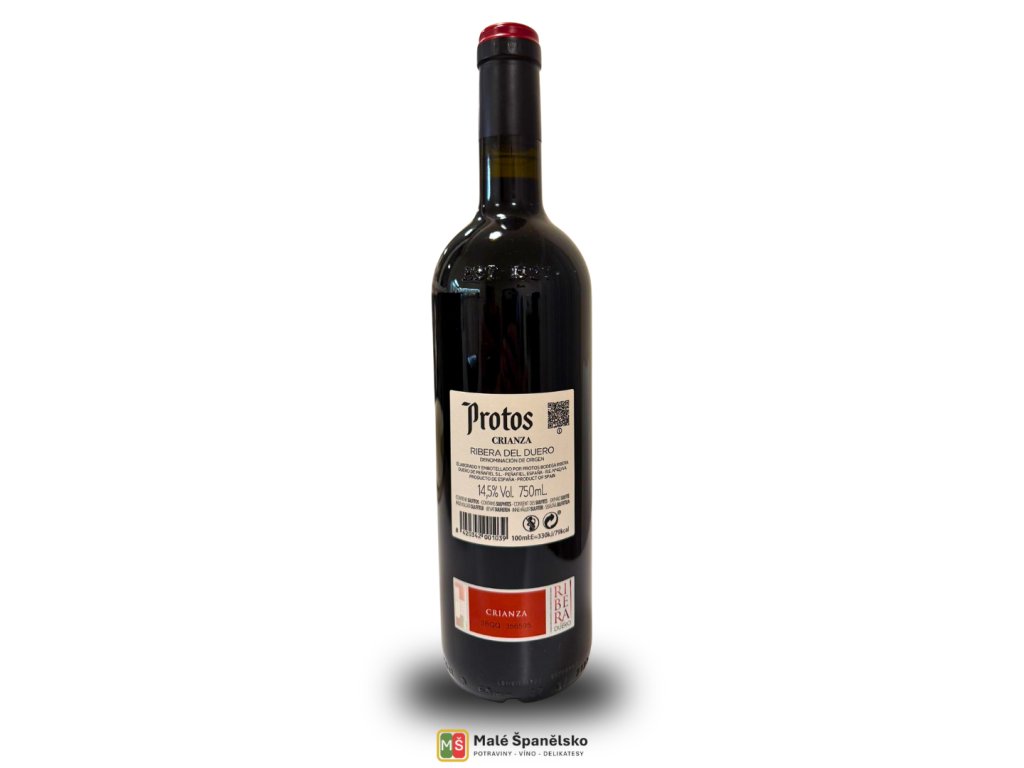 Klasika ze srdce Ribera del Duero. Protos Crianza 2020 vystupuje hlubokou třešňově rubínovou barvou s fialovým okrajem. Vůně se otevírá vrstvami černé třešně, ostružin a švestek, postupně přechází do tónů vanilky, kakaa, kávy a jemného kouře z dubu. V ústech je víno suché, plné a koncentrované, se šťavnatým středem, jemnozrnnými tříslovinami a pevnější, ale vyváženou kyselinou. Dochuť je dlouhá, ovocně kořenitá, s náznaky lékořice, tabáku a balsamických tónů.