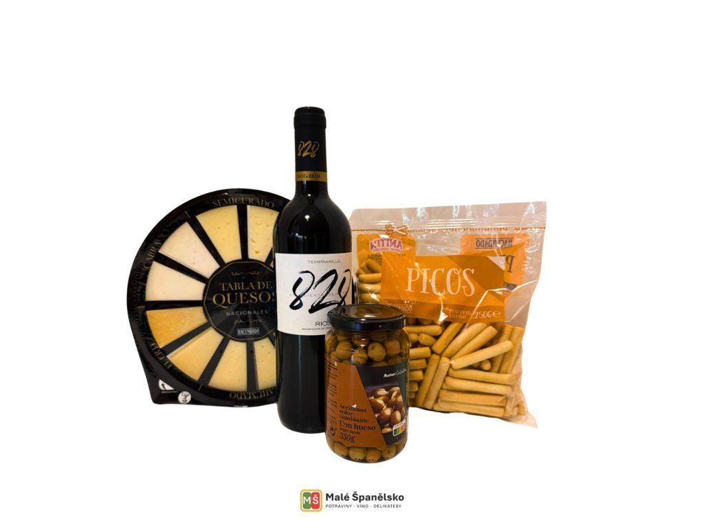 Různé druhy španělských sýrů společně s aromatickými olivami vytvářejí chuťově vyváženou kombinaci, která se dokonale snoubí s charakterem vína Tempranillo z oblasti Rioja. Výsledkem je autentický tapas zážitek ve stylu španělských vináren.