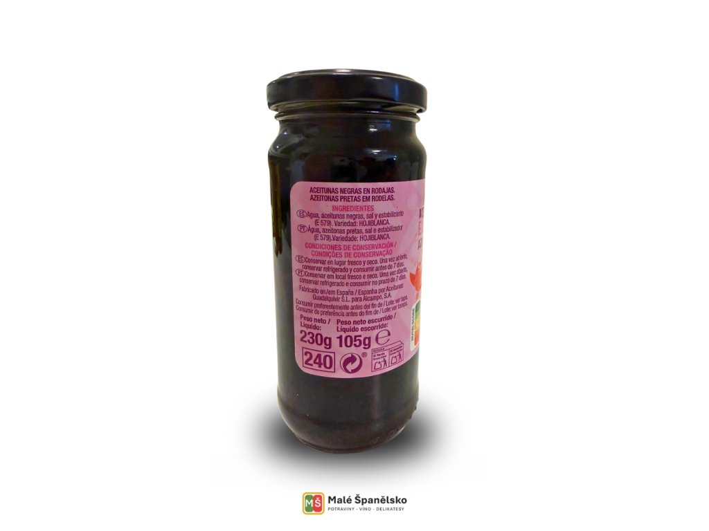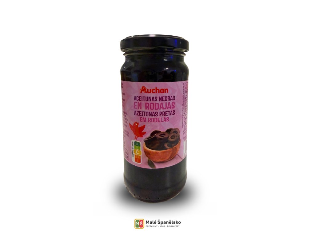 Černé olivy krájené v plátcích, Auchan (Hojiblanca) – 230 g